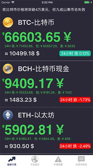 支持区块链主流数字币在各大平台的价格查询