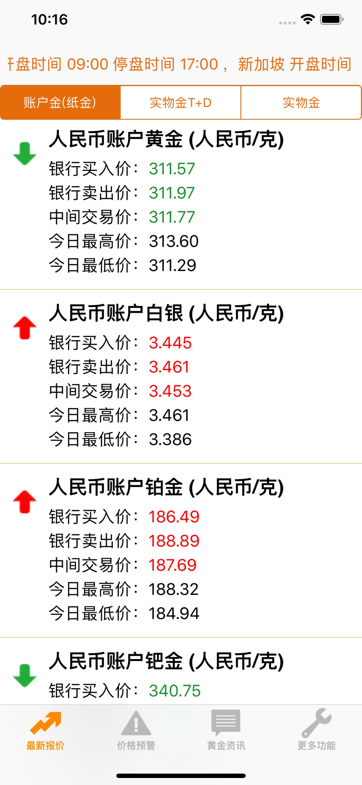 支持账户黄金(纸黄金)黄金T+D,实物金 等多种黄金交易方式的实时报价。是黄金交易,黄金开户,黄金理财,黄金投资的理想工具。