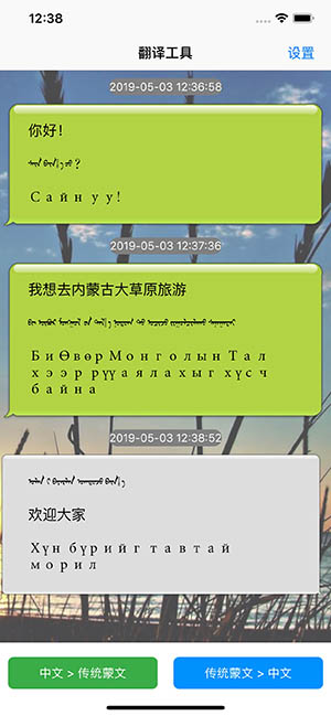 中国内蒙古传统蒙古语翻译工具,可以把汉字快速翻译成传统蒙文和新蒙文。 内蒙古自治区,简称“内蒙古”,是中华人民共和国省级行政区。首府呼和浩特,位于中国华北地区,内蒙古界于北纬37°24′-53°23′,东经97°12′-126°04′之间,东北部与黑龙江、吉林、辽宁、河北交界,南部与山西、陕西、宁夏相邻,西南部与甘肃毗连,北部与俄罗斯、蒙古国接壤,内蒙古总面积118.3万平方千米。 传统蒙古文在内蒙古地区是一种广泛使用的文字,与外蒙古国文字并不通用。目前属于少数民族区域性语言文字。